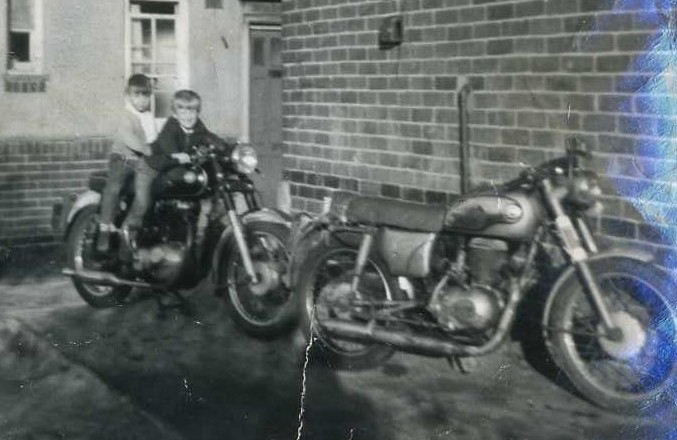 My younger brother on my bike again ! that was a 1960 ? AJS model 8 lightweight a 350 cc single potter that I used to thrash on its limit most of the time in the mid 60's and it never broke down once all round another great bike but it had 6 volt lighting, good job I ate plenty of carrots !! My other brothers James Captain is in the foreground fairly quick at that time for a 200cc bike.