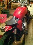 Chit or bust i went to work on her,Fixed the number plate down on the side and chopped the rear a bit and fitted cow horn style bars.