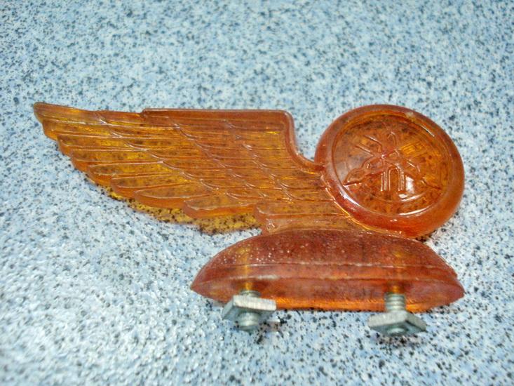 i was told this is a headlight visor emblem. three holes, two for mounting and one larger for light so it would glow. was it a option, or aftermarket? does any one know what years and what bikes it was on?